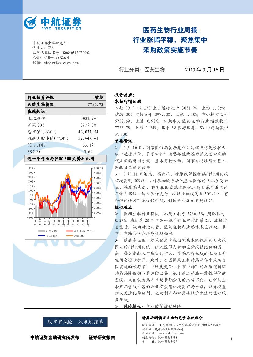 中航证券:医药生物行业周报:行业涨幅平稳,聚焦集中采购政策实施节奏.pdf
