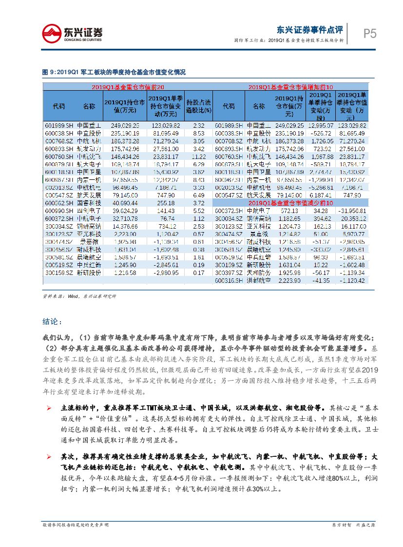 东兴证券:国防军工行业事件点评:2019Q1基金重仓持股军工板块分析.pdf