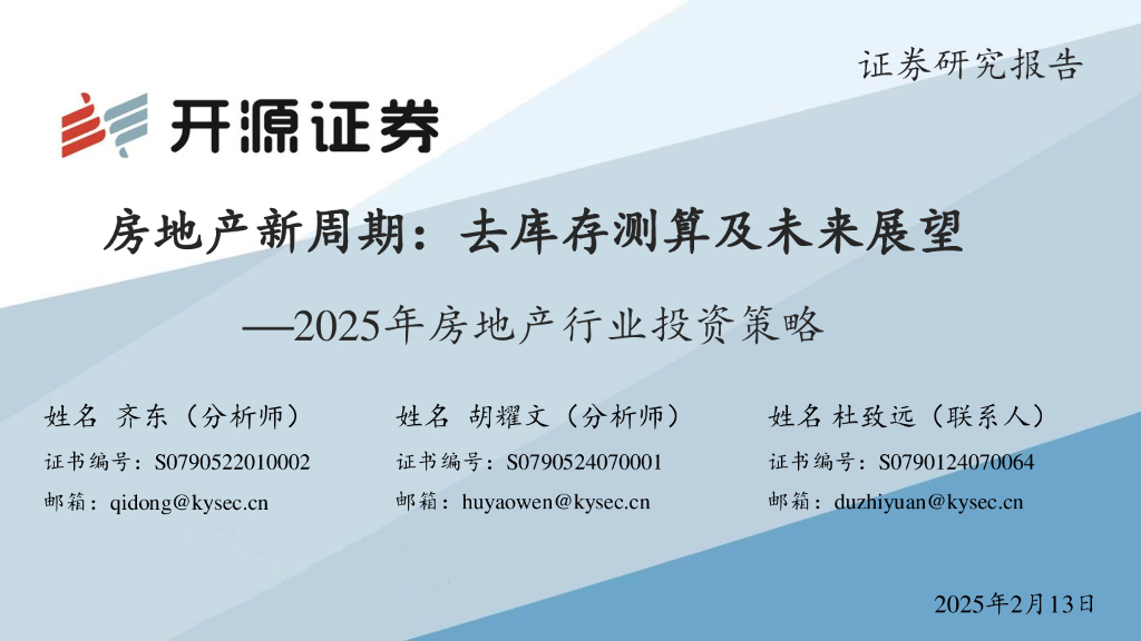 开源证券:2025年房地产行业投资策略:房地产新周期:去库存测算及未来展望.pdf