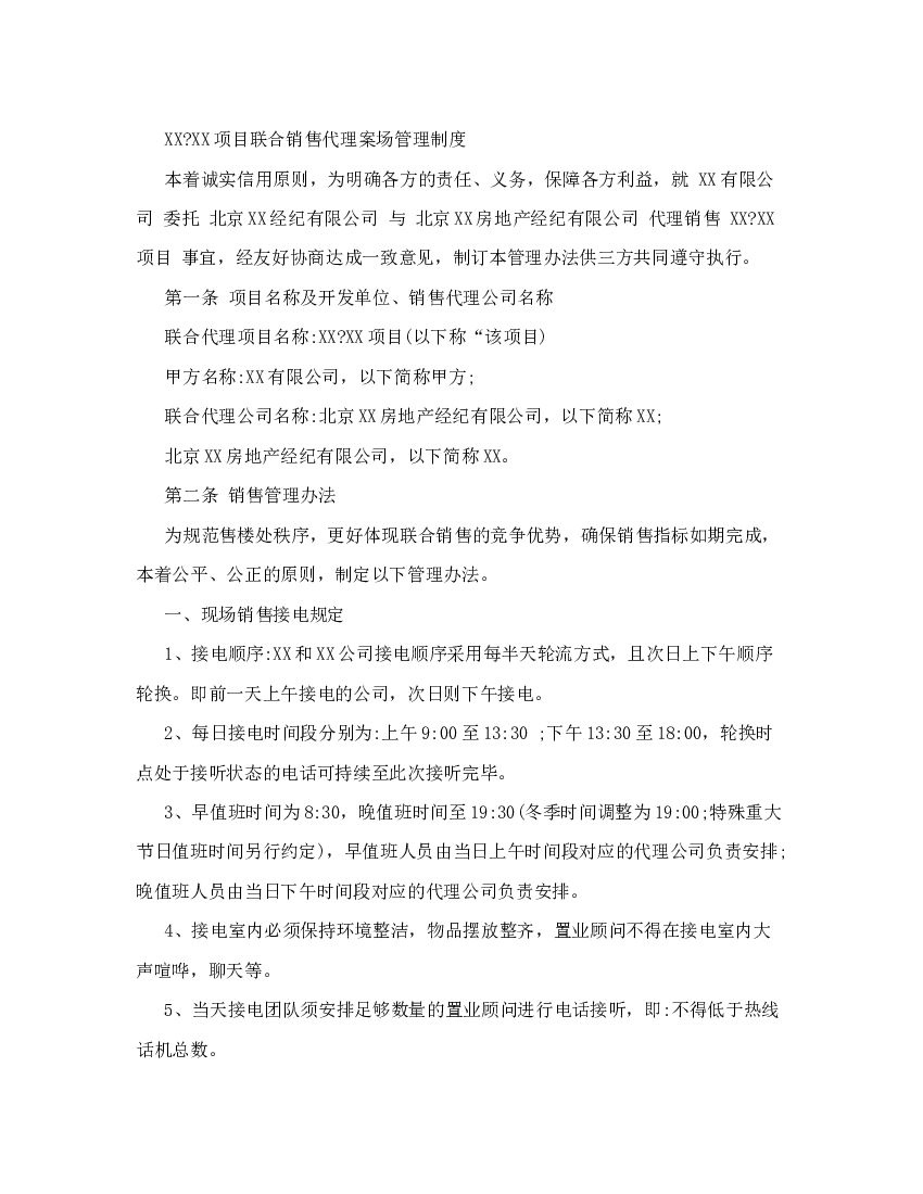 #案场文案# 案场联合销售代理案场管理制度.doc