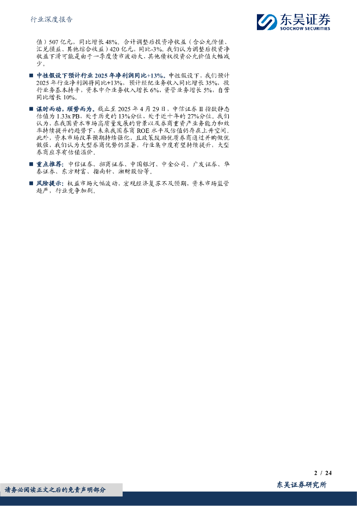 东吴证券:证券行业2025年一季报总结:低基数叠加市场活跃,归母净利润同比增长80%.pdf