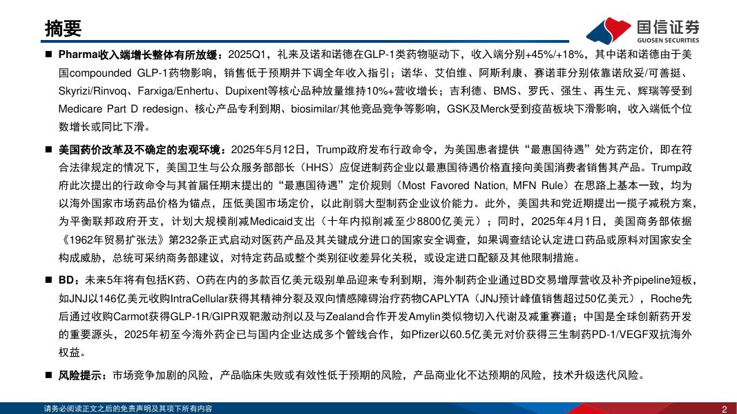 国信证券:海外制药企业2025Q1业绩回顾:美国药品价格改革叠加不确定的宏观环境.pdf