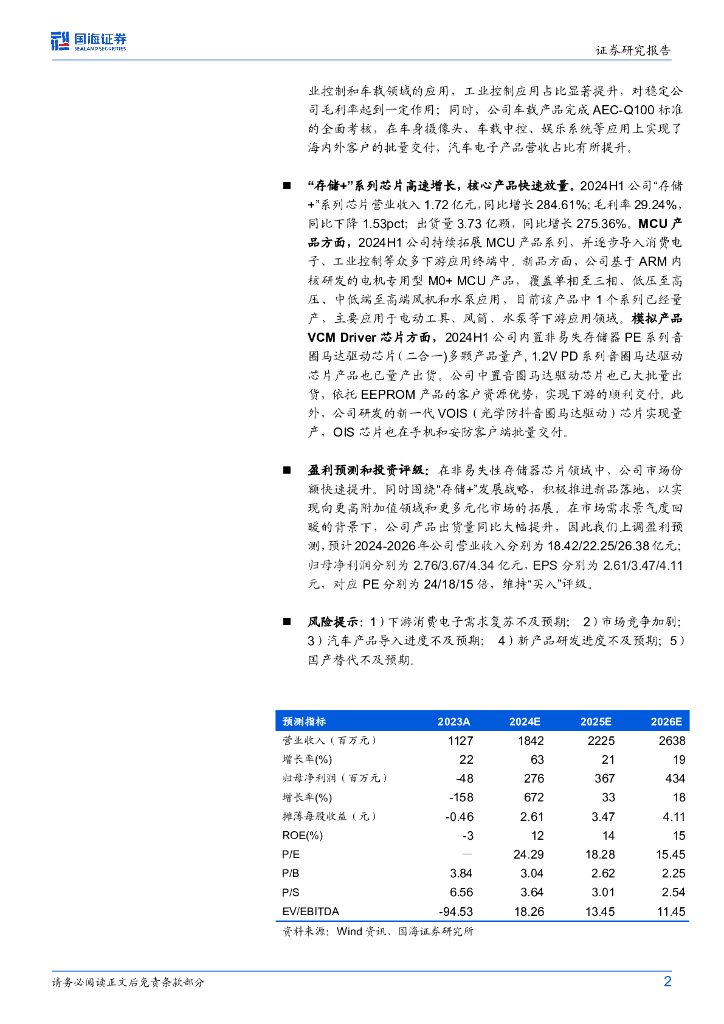 国海证券:普冉股份(688766)-2024年半年报点评:存储芯片盈利能力显著回暖,“MCU+模拟”产品快速放量.pdf