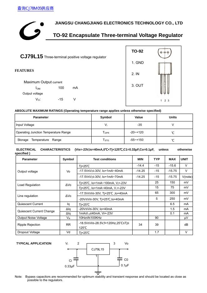 JIANGSU CHANGJIANG ELECTRONICS TECHNOLOGY CJ79L15 数据手册.pdf