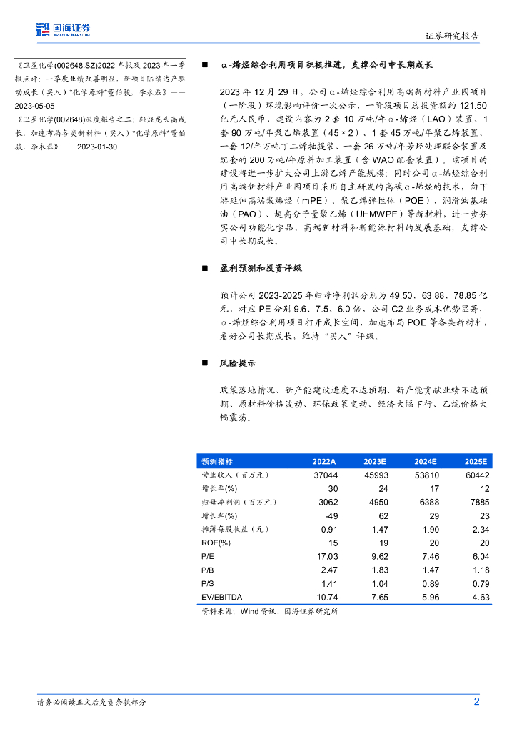 国海证券:卫星化学(002648)-2023年业绩预告点评:全年业绩高增,α -烯烃综合利用项目积极推进.pdf