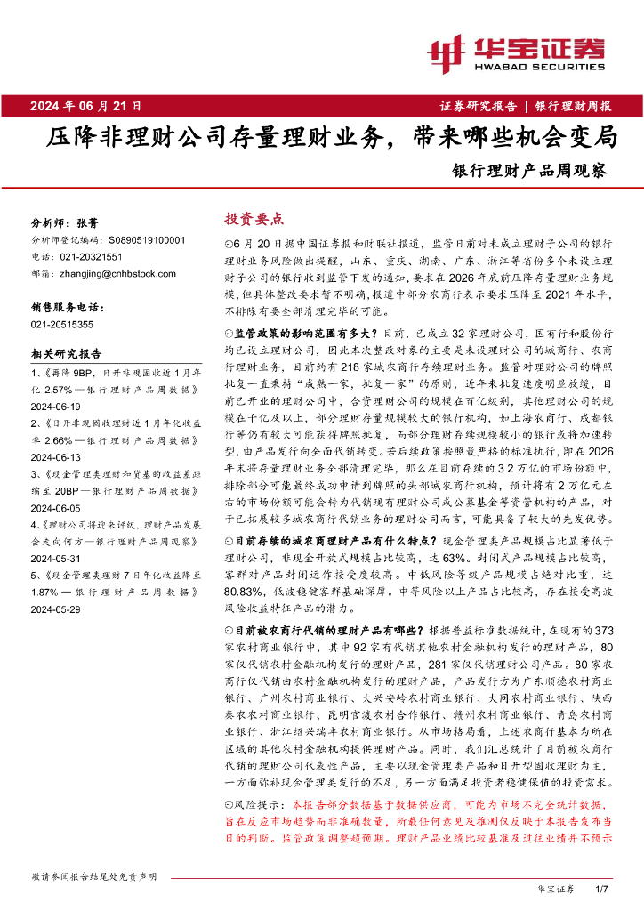 华宝证券:银行理财产品周观察:压降非理财公司存量理财业务,带来哪些机会变局.pdf