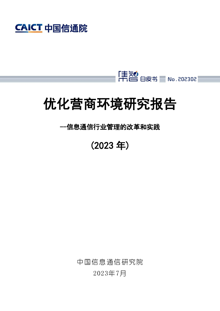 中国信通院:优化营商环境研究报告——信息通信行业管理的改革和实践(2023年).pdf