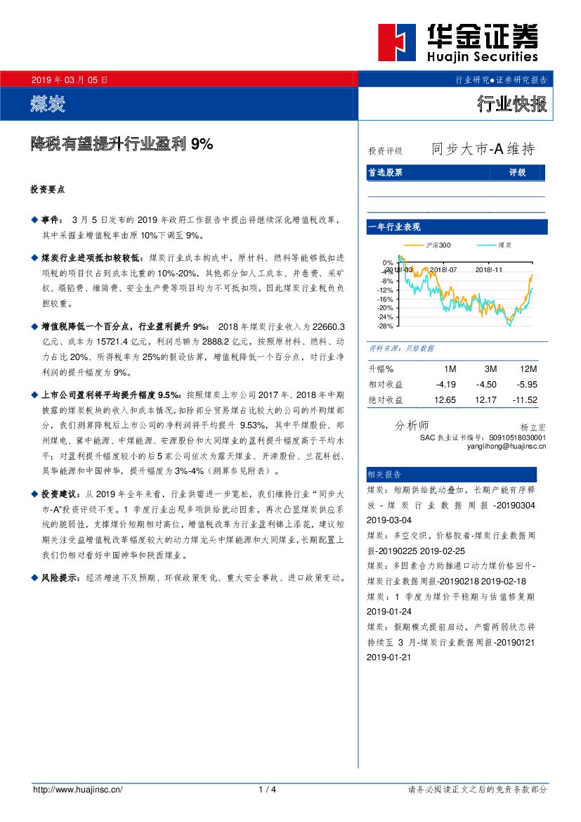 华金证券:煤炭行业快报:降税有望提升行业盈利9%.pdf