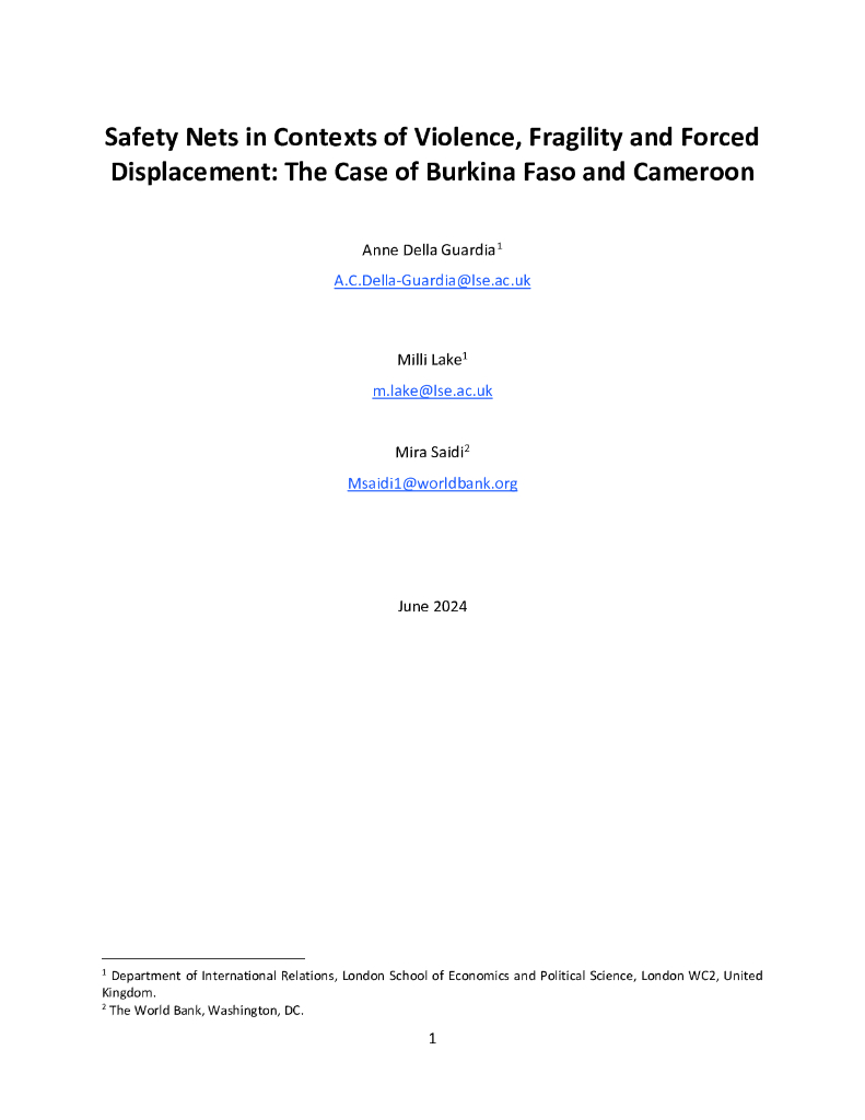 世界银行:2024暴力、脆弱和被迫流离失所背景下的安全网:布基纳法索和喀麦隆的案例(英文版).pdf