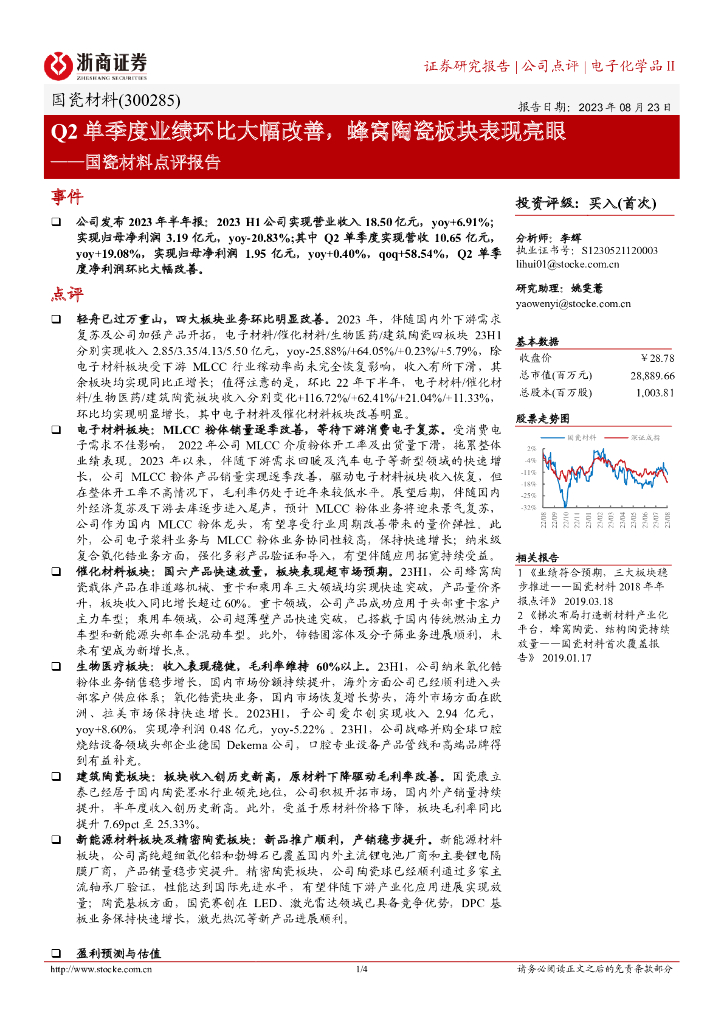 浙商证券:国瓷材料点评报告:Q2单季度业绩环比大幅改善,蜂窝陶瓷板块表现亮眼.pdf