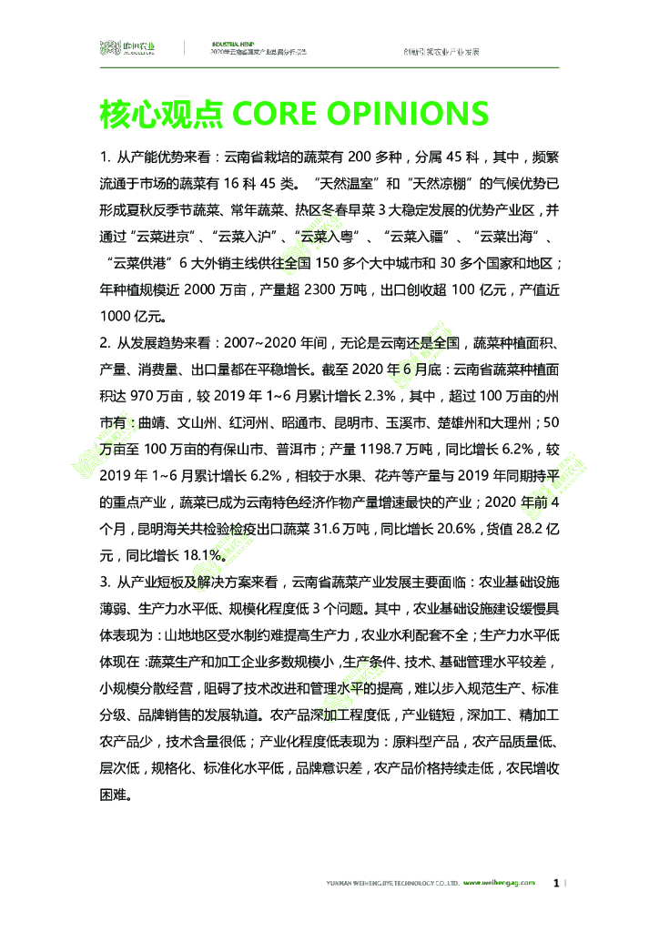 唯恒农业:2020年云南省蔬菜产业数据分析报告.pdf