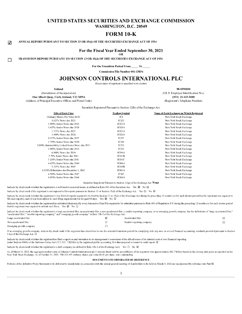 Johnson Controls International plc(JCI)2021财年年度报告(英文版).pdf