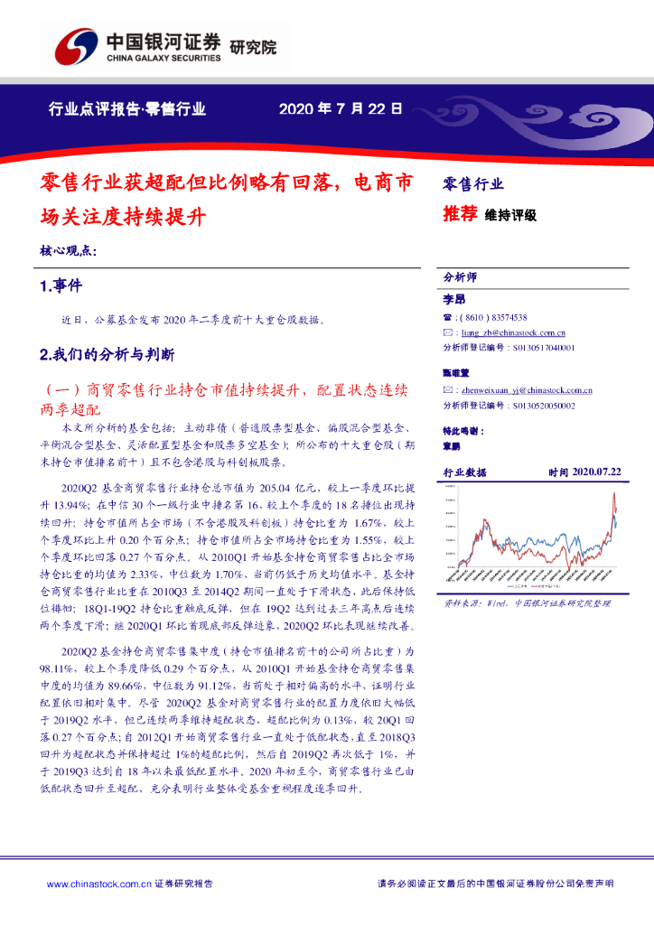 中国银河:零售行业:零售行业获超配但比例略有回落,电商市场关注度持续提升.pdf