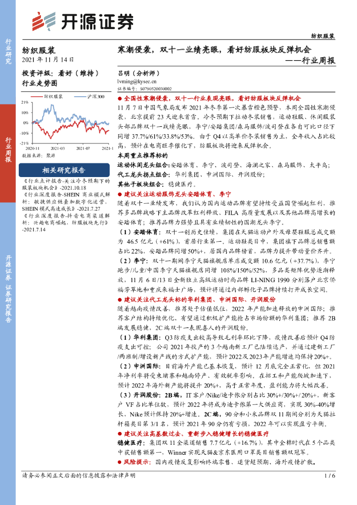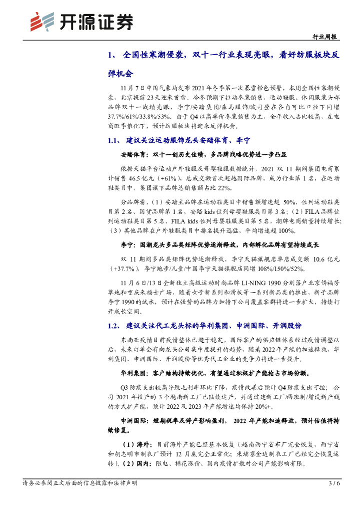 开源证券:纺织服装行业周报:寒潮侵袭,双十一业绩亮眼,看好纺服板块反弹机会.pdf