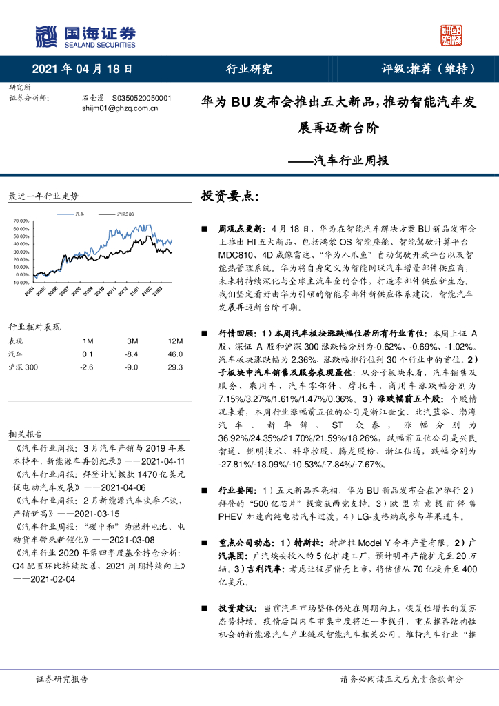 国海证券:汽车行业周报:华为BU发布会推出五大新品,推动智能汽车发展再迈新台阶.pdf