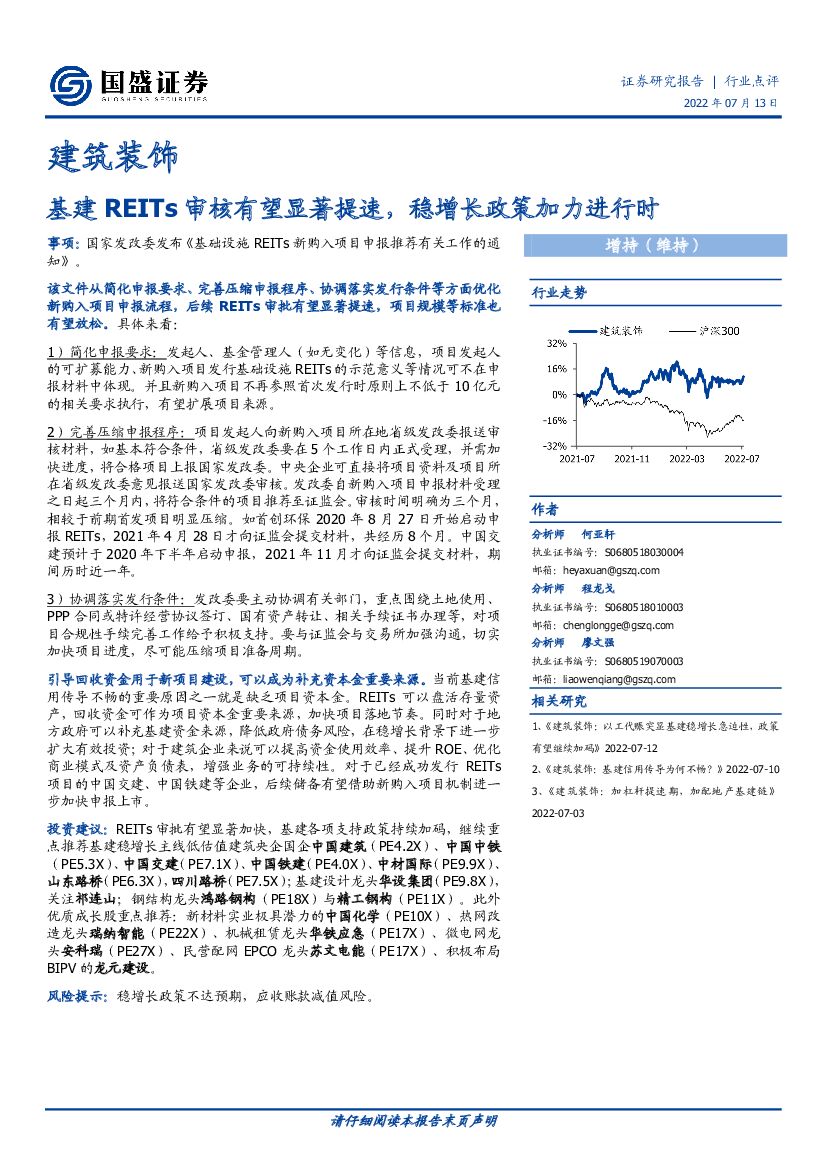 国盛证券:建筑装饰行业点评:基建REITs审核有望显著提速,稳增长政策加力进行时.pdf