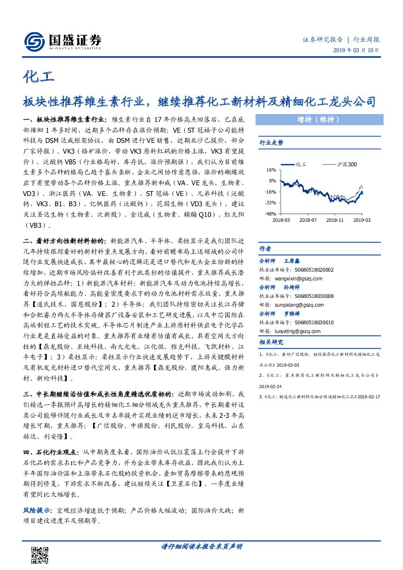 国盛证券:化工行业周报:板块性推荐维生素行业,继续推荐化工新材料及精细化工龙头公司.pdf