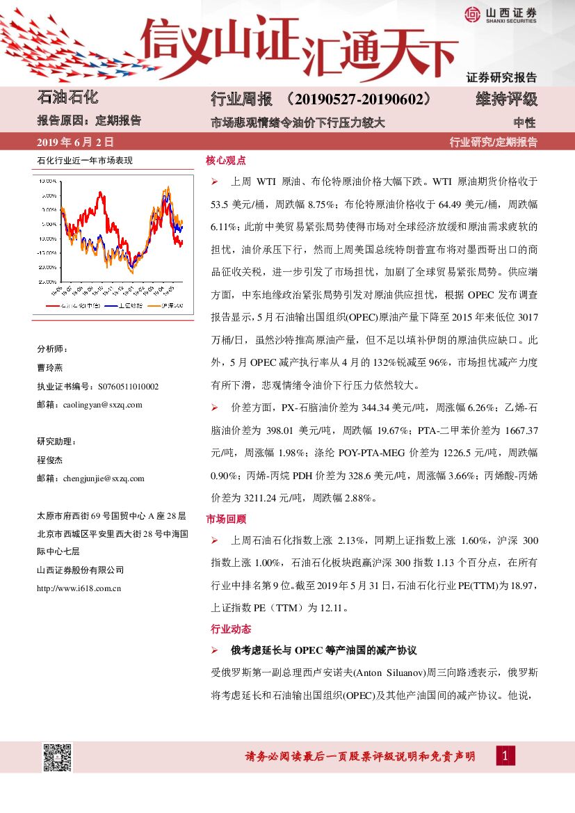 山西证券:石油化工行业周报:市场悲观情绪令油价下行压力较大.pdf