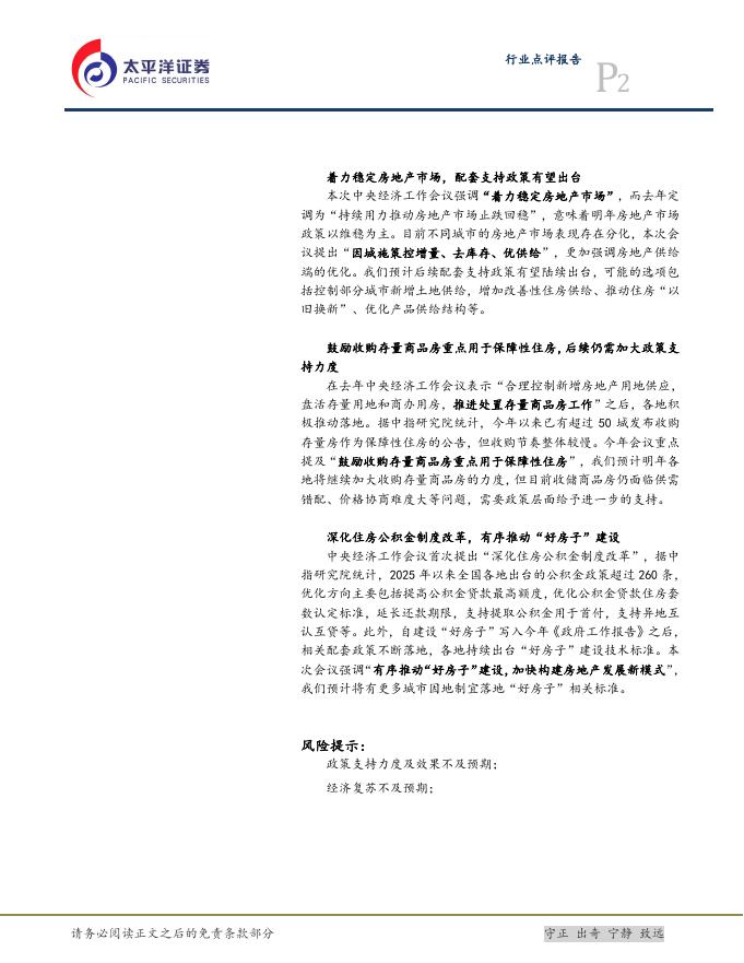 太平洋证券:房地产:中央经济工作会议点评-着力稳定房地产市场,加快构建发展新模式.pdf