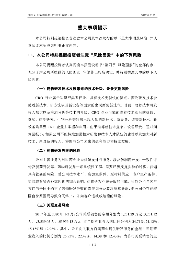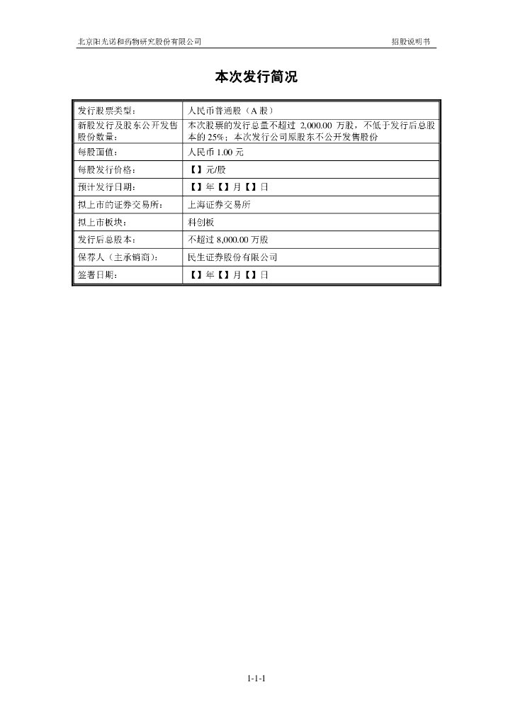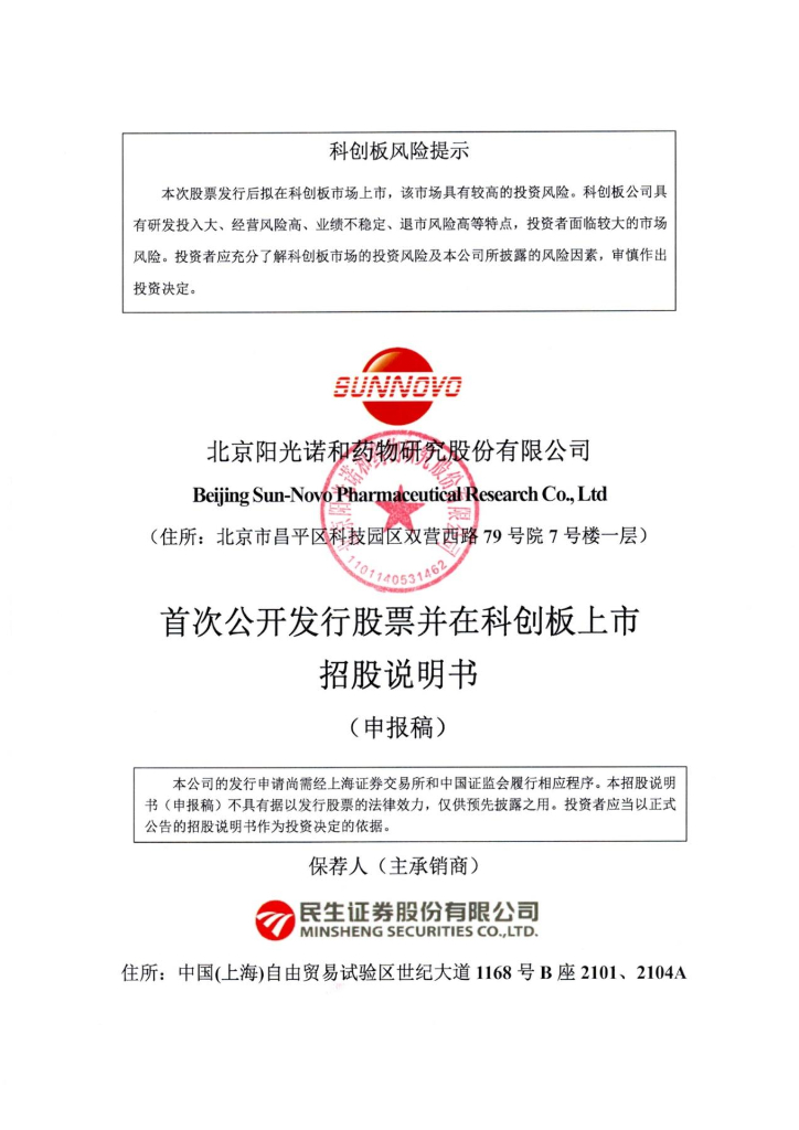 北京阳光诺和药物研究股份有限公司上交所科创板IPO上市招股说明书.pdf