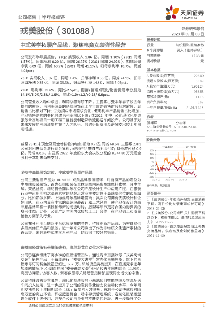 天风证券:戎美股份(301088)-中式美学拓展产品线,聚焦电商女装弹性经营.pdf