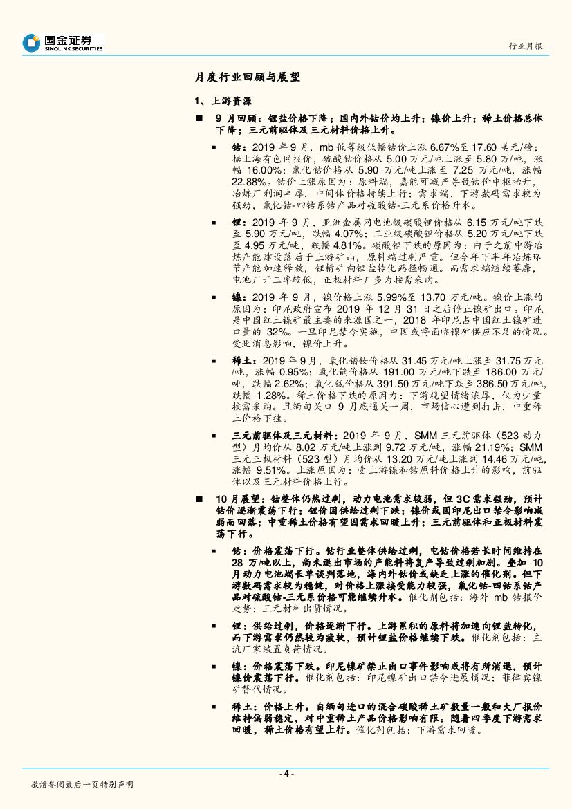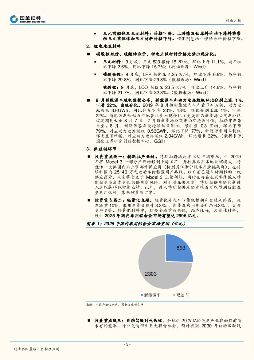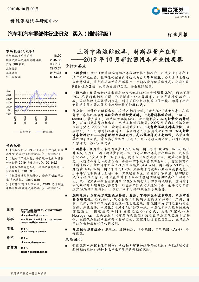 国金证券:2019年10月新能源汽车产业链观察:上游中游边际改善,特斯拉量产在即.pdf