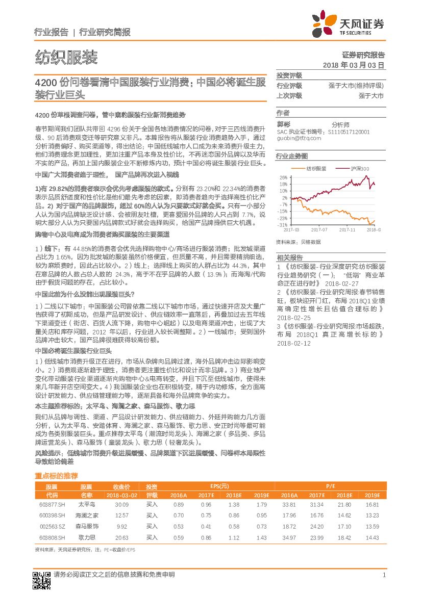 天风证券:纺织服装行业研究简报:4200份问卷看清中国服装行业消费:中国必将诞生服装行业巨头.pdf