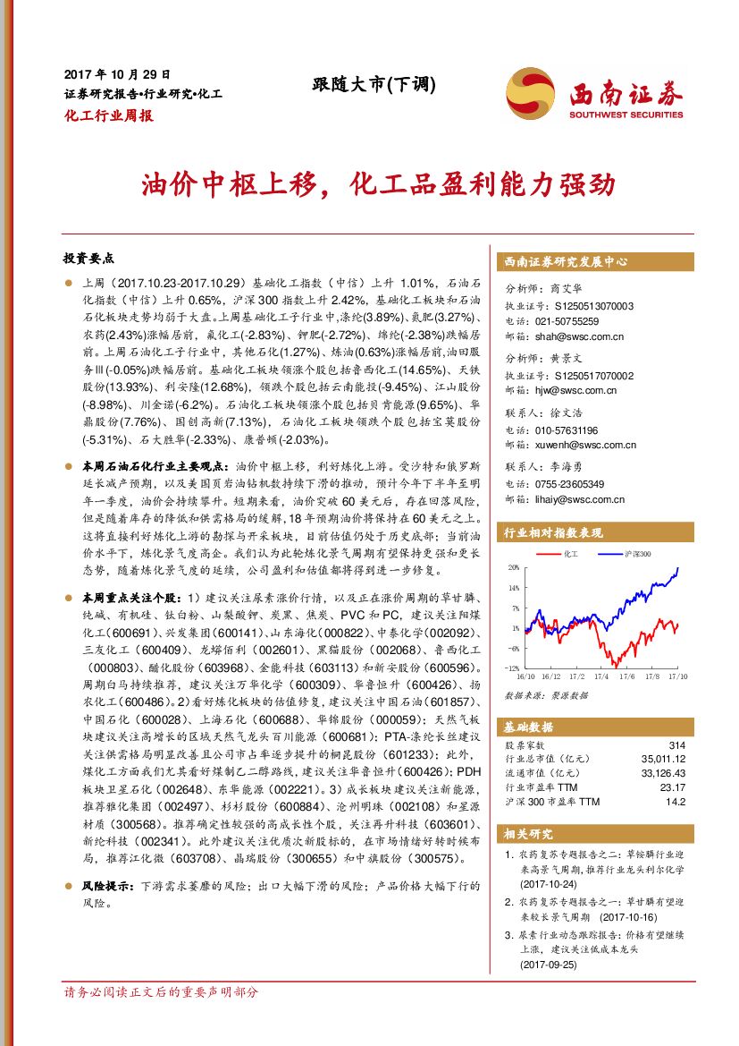 西南证券:化工行业周报:油价中枢上移,化工品盈利能力强劲.pdf