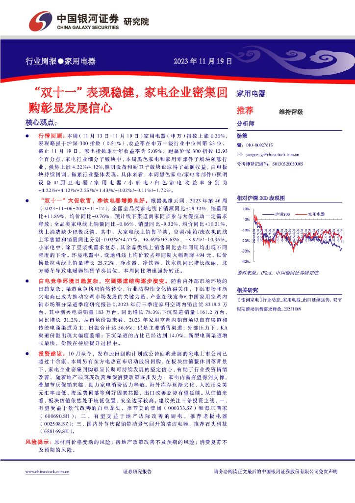 中国银河:家用电器行业周报:“双十一”表现稳健,家电企业密集回购彰显发展信心.pdf