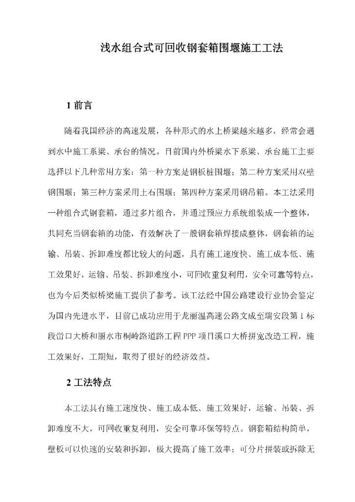 浅水组合式可回收钢套箱围堰施工工法30页.pdf