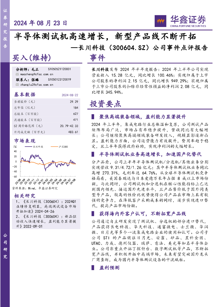 华鑫证券:长川科技(300604)-公司事件点评报告:半导体测试机高速增长,新型产品线不断开拓.pdf
