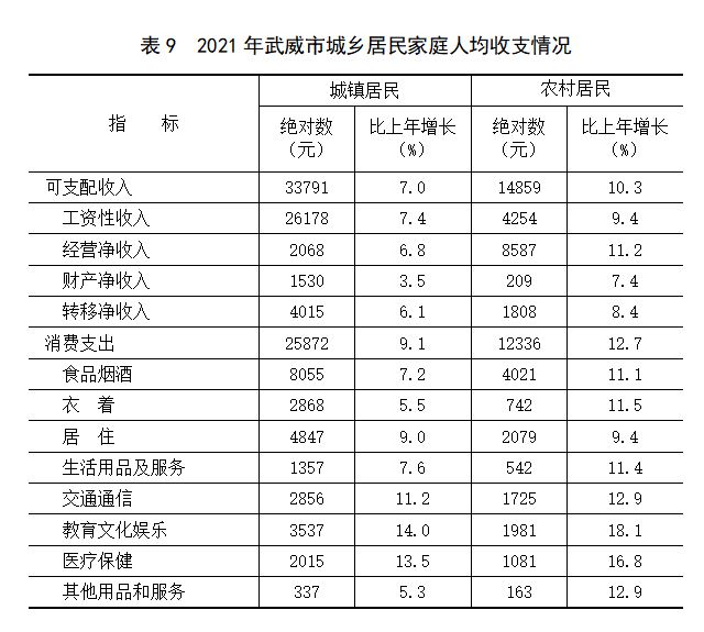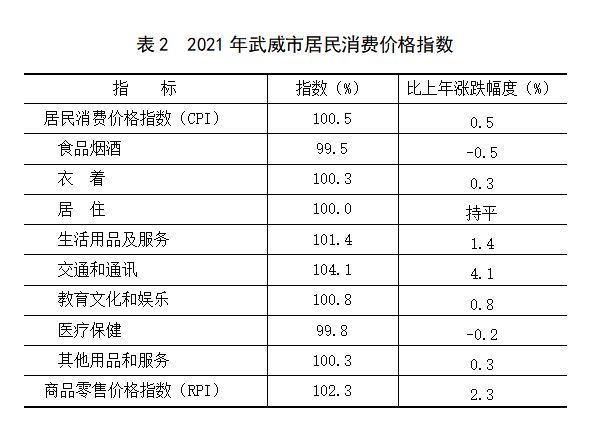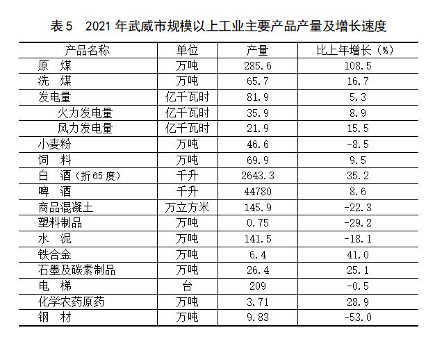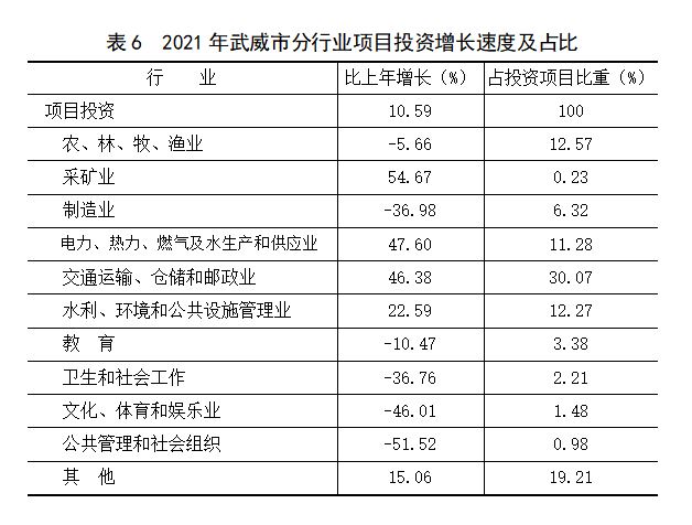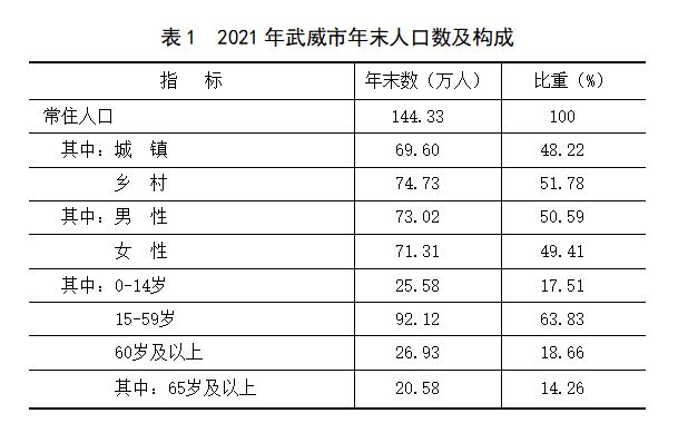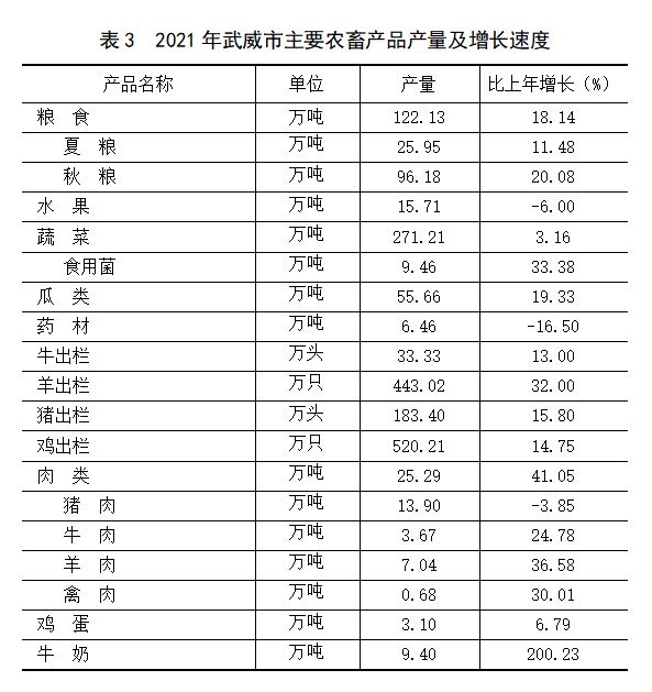 武威市2021年国民经济和社会发展统计公报