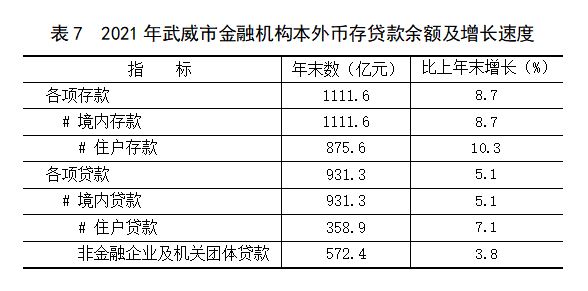 金融:年末全市金融机构本外币存款余额1111.6亿元、增长8.7%,其中住户存款875.6亿元、增长10.3%。各项贷款余额931.3亿元、增长5.1%。