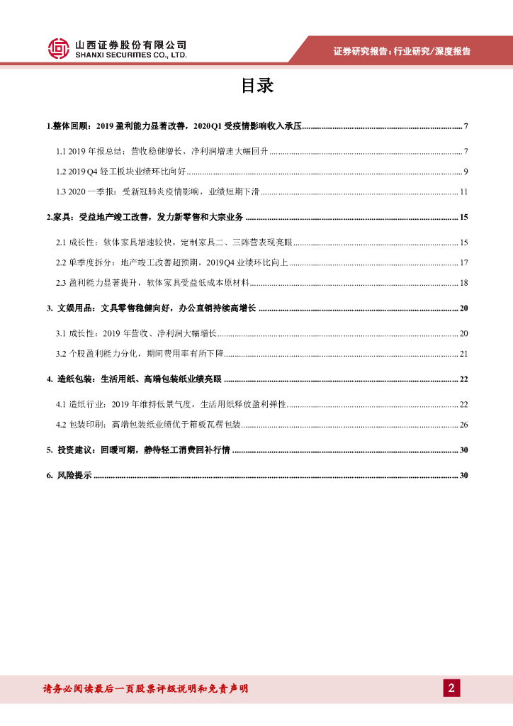 山西证券:轻工行业2019年报&2020一季报综述:家具受益地产改善19Q4边际向好,生活用纸量利同增.pdf