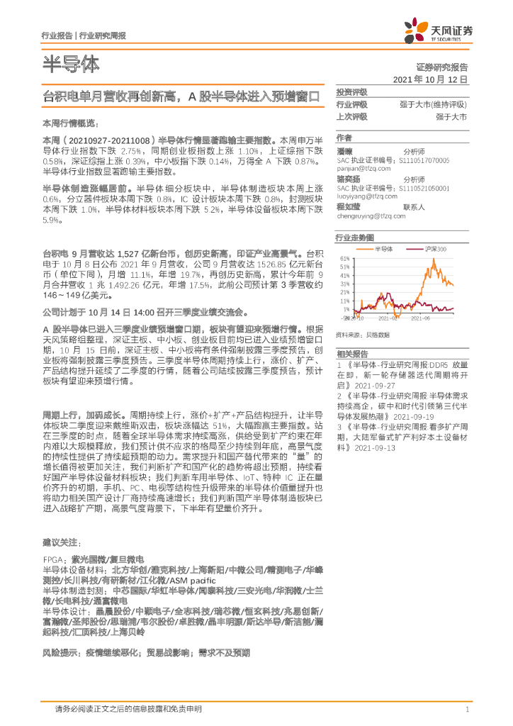 天风证券:半导体行业研究周报:台积电单月营收再创新高,A股半导体进入预增窗口.pdf