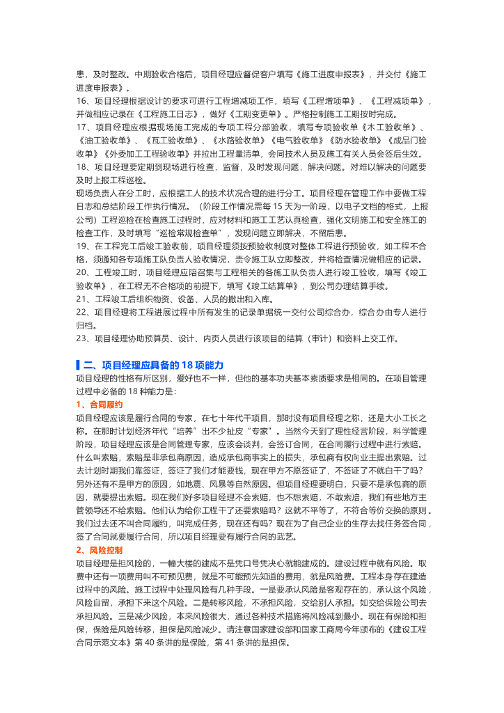​项目经理必备能力和工作要点总结.doc