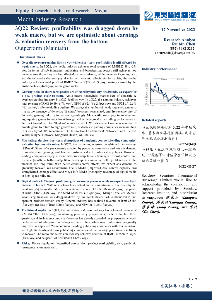 东吴证券国际经纪:传媒行业深度报告:2022Q3业绩综述:逆风环境拖累利润率,底部看好业绩及估值修复.pdf