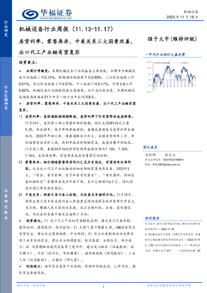 华福证券:机械设备行业周报:房贷利率、零售库存、中美关系三大因素改善,出口代工产业链有望复苏.pdf