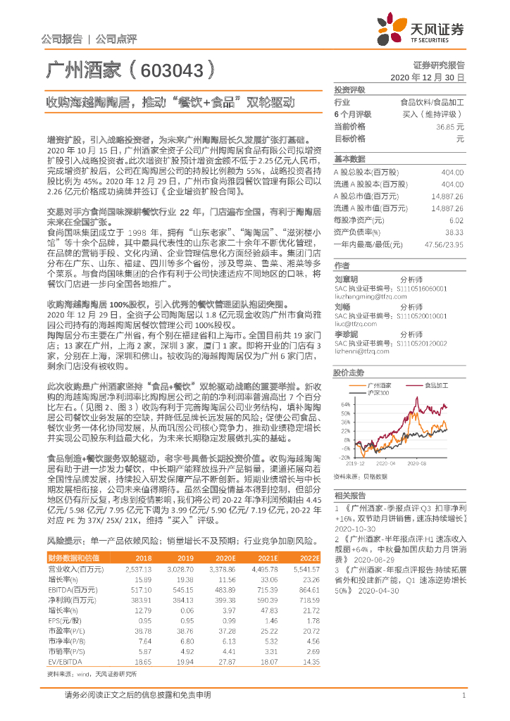 天风证券:广州酒家(603043)-收购海越陶陶居,推动“餐饮+食品”双轮驱动.pdf