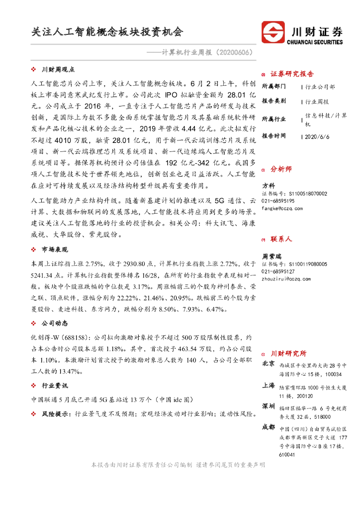 川财证券:计算机行业周报:关注人工智能概念板块投资机会.pdf