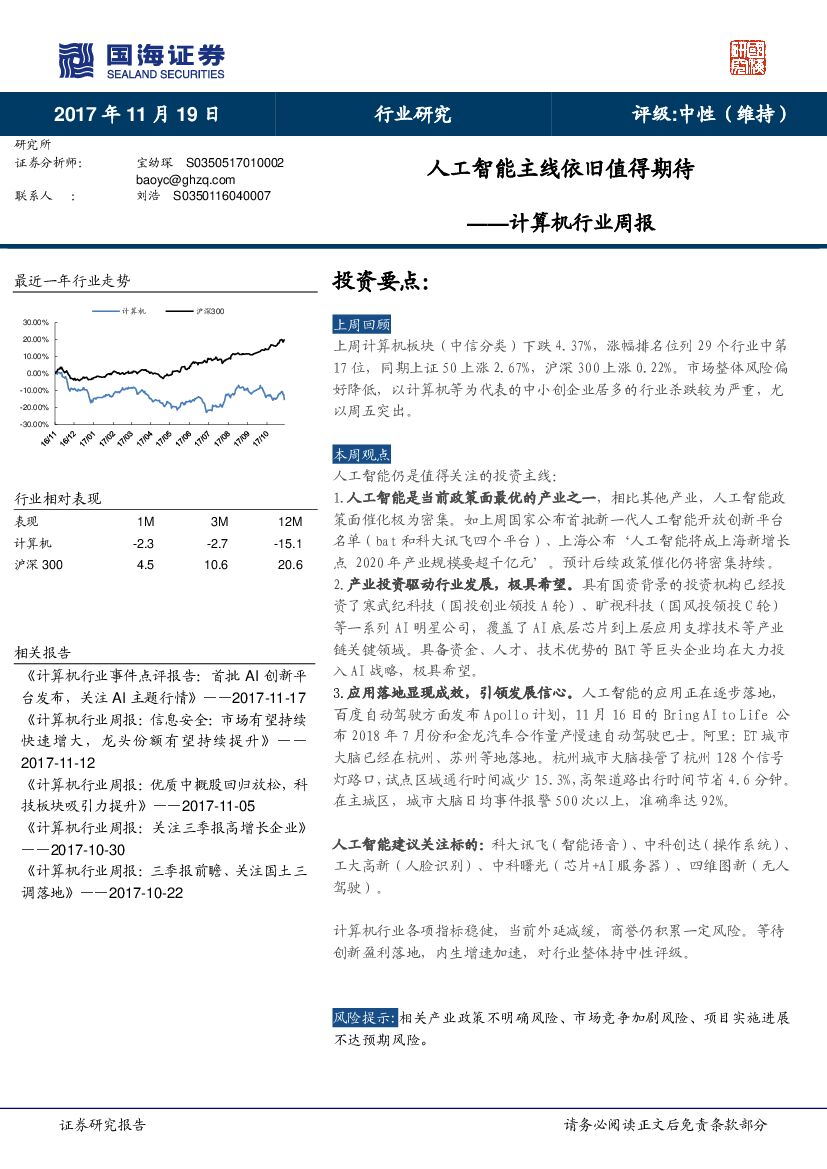 国海证券:计算机行业周报:人工智能主线依旧值得期待.pdf