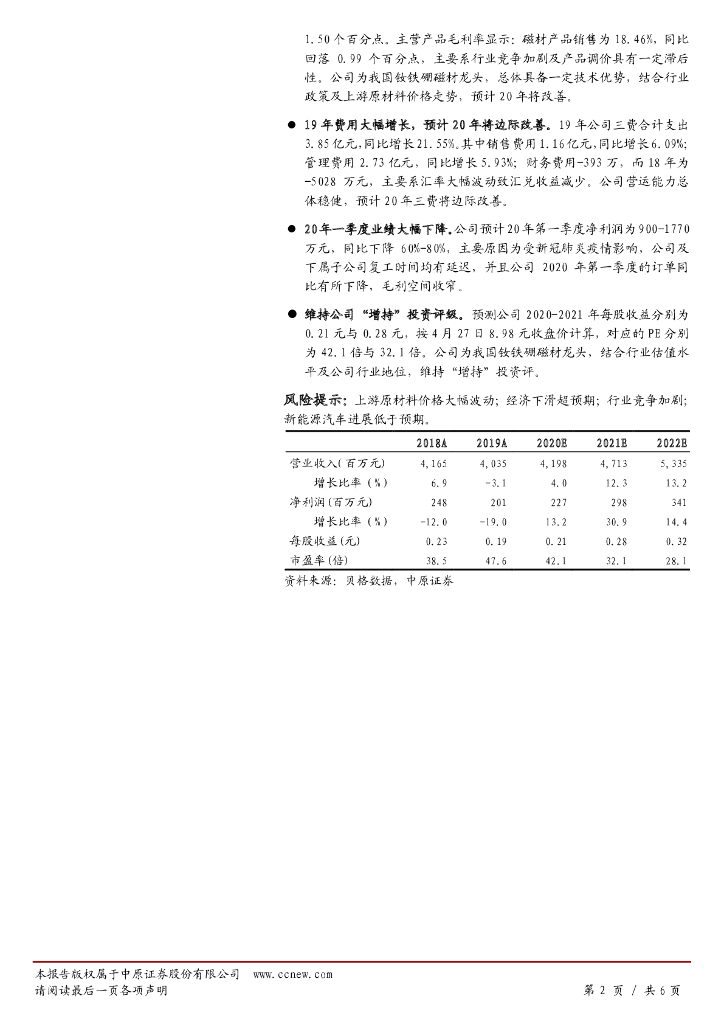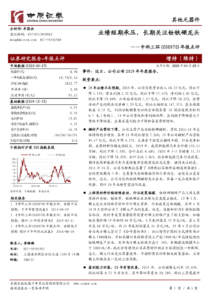 中原证券:中科三环(000970)-年报点评:业绩短期承压,长期关注钕铁硼龙头.pdf