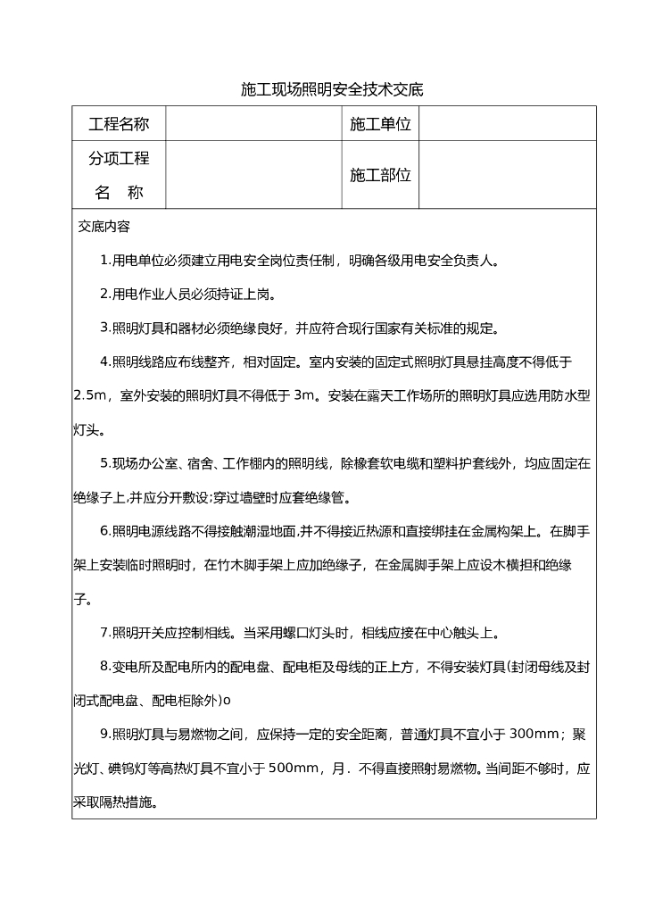 施工现场照明安全技术交底.doc