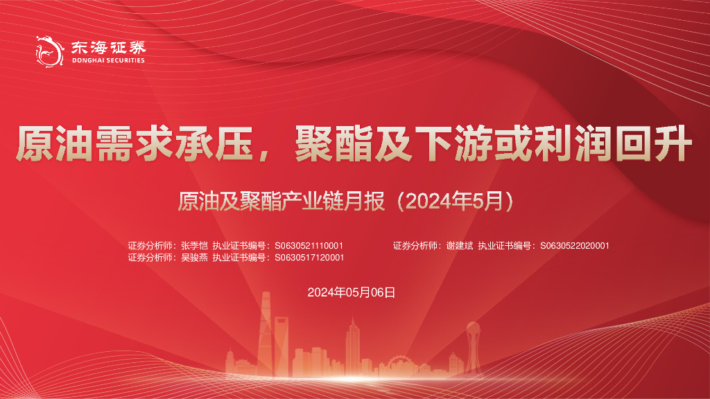 东海证券:原油及聚酯产业链月报(2024年5月):原油需求承压,聚酯及下游或利润回升.pdf