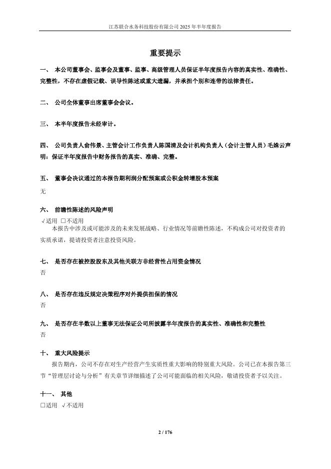 603291-联合水务:联合水务2025年半年度报告.pdf