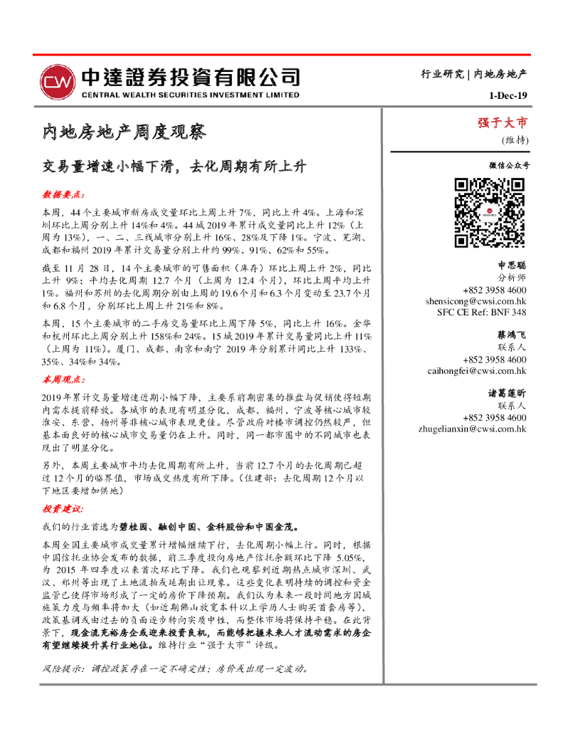 中达证券投资:内地房地产周度观察:交易量增速小幅下滑,去化周期有所上升.pdf