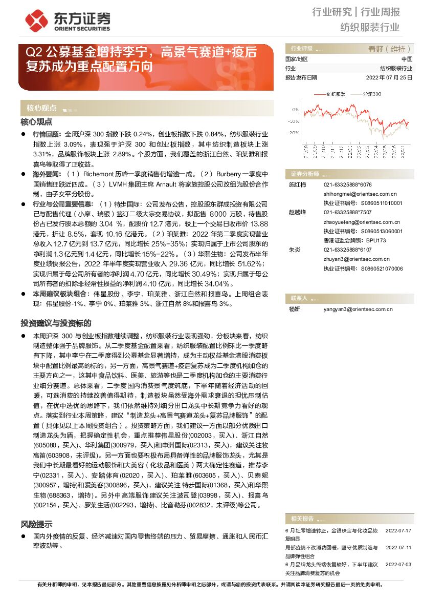东方证券:纺织服装行业:Q2公募基金增持李宁,高景气赛道+疫后复苏成为重点配置方向.pdf