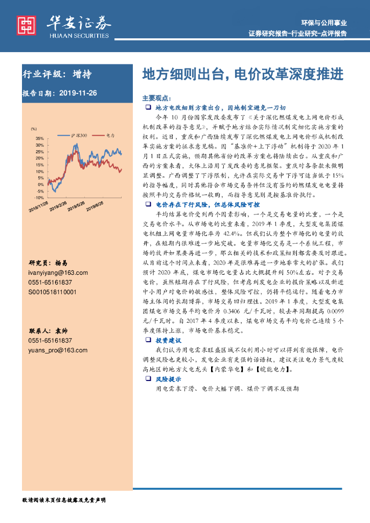 华安证券:环保与公用事业:地方细则出台,电价改革深度推进.pdf