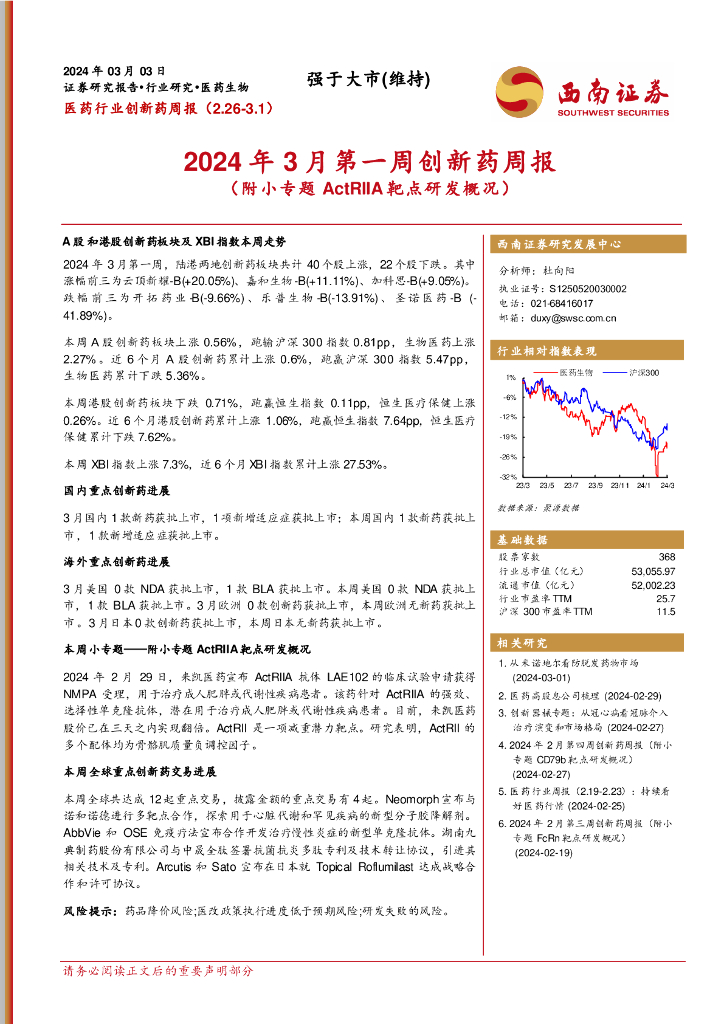 西南证券:2024年3月第一周创新药周报(附小专题ActRIIA靶点研发概况).pdf