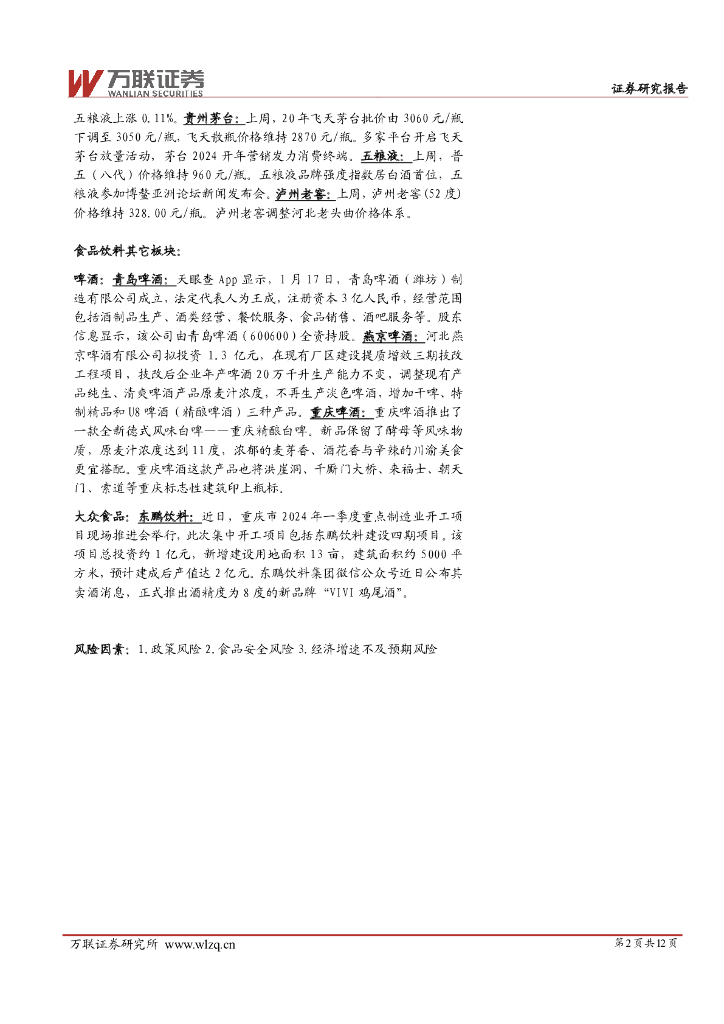 万联证券:食品饮料行业周观点:茅台开年营销发力消费终端,多家食饮公司业绩预喜.pdf